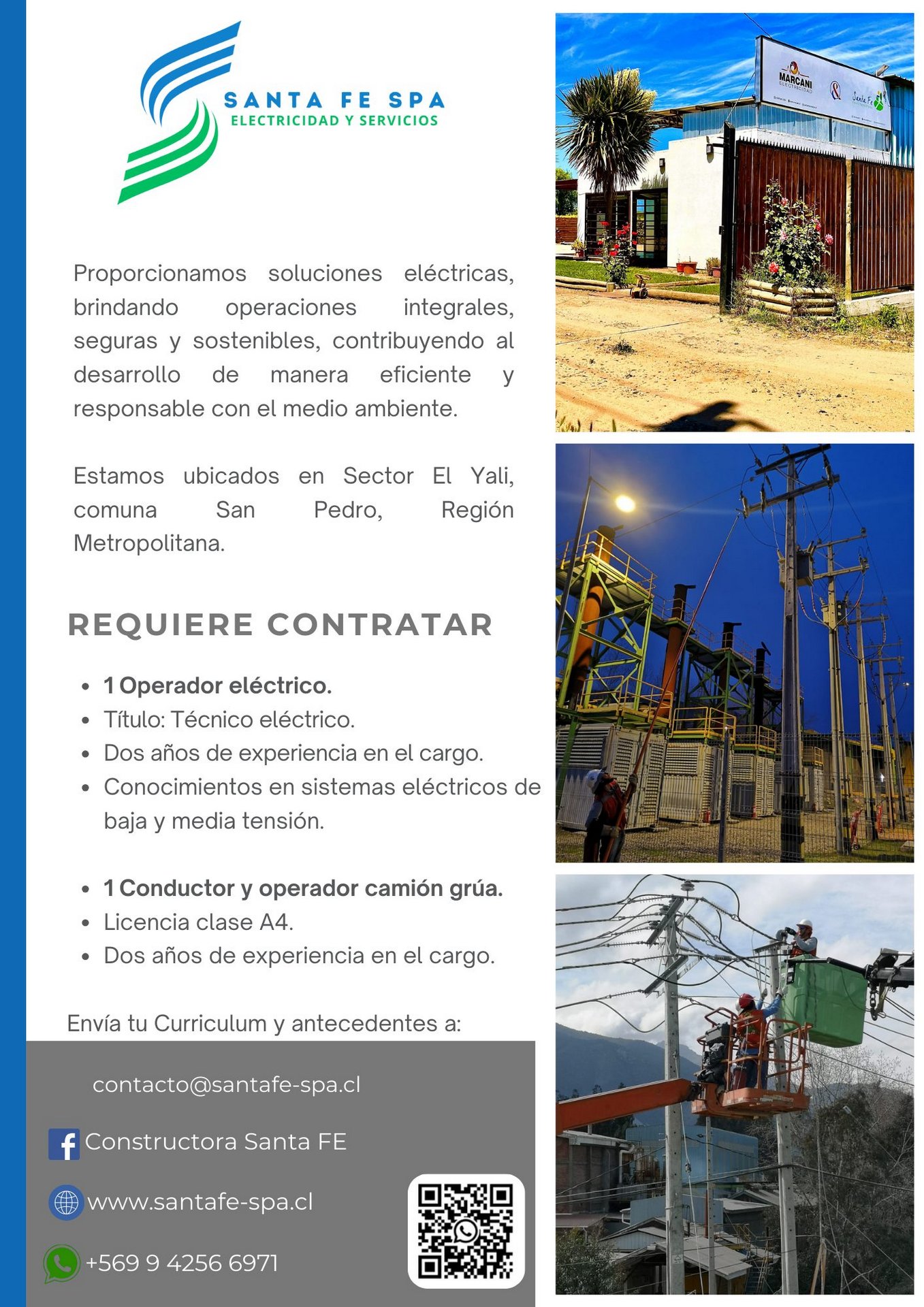 Trabaja con nosotros e incorpórate a un equipo con 12 años de trayectoria en el mercado. Proporcionamos soluciones eléctricas confiables y seguras, comprometidos con un futuro sostenible y sustentable.